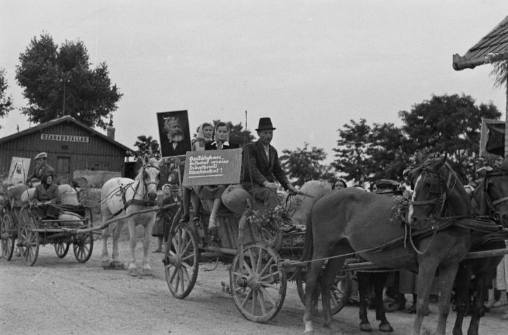[51] Ezekre az alkalmakra a gazdáknak fel kellett díszíteniük a kocsikat, amelyeken szállították a gabonát, és ugyanígy ünnepi díszbe kellett öltöztetni az átvevőhelyként funkcionáló földművesszövetkezetek épületét, elhelyezve rajtuk Rákosi képe mellett két oldalról Lenin és Sztálin képét is.