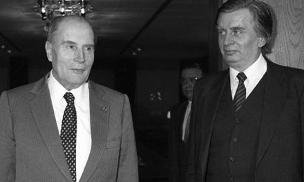la République (Paris, 17 janvier 1990). „Az Ön állami útja Magyarországon a második lesz 1982 júliusa óta, [az út] úgy lesz tekintve, mint egy tanúságtétel egy olyan országban Kelet-Európában, amely az elsők között kezdeményezett gazdasági reformokat, majd demokratikus reformokat. Az út akkor valósul meg, amikor az ország egyértelműen elkötelezte magát a demokrácia irányába.” „De a német befolyás meghatározó maradt, és nagyon messze vagyunk az NSZK mögött, és még Olaszország [mögött is] a gazdasági kapcsolatokban.”